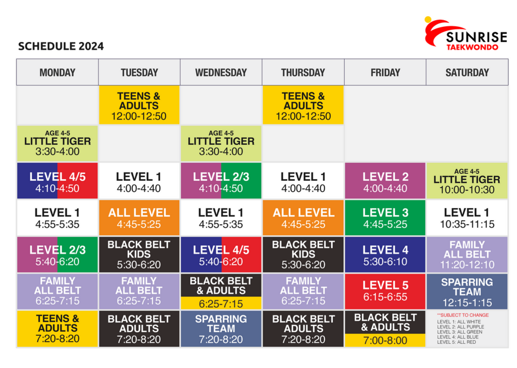 Explore our dynamic schedule to find the perfect class for your journey in martial arts.